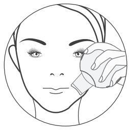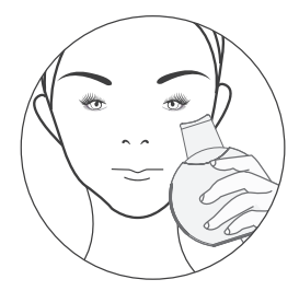 Tenez l’appareil (avec votre main sur les barres conductrices) à l’envers (le corps de l’appareil vers le haut et la lame de la spatule vers le bas). Faites glisser doucement la spatule en remontant du bas du front vers le haut, de l’intérieur vers l’extérieur du visage et du menton vers les oreilles pour l’ovale du visage.